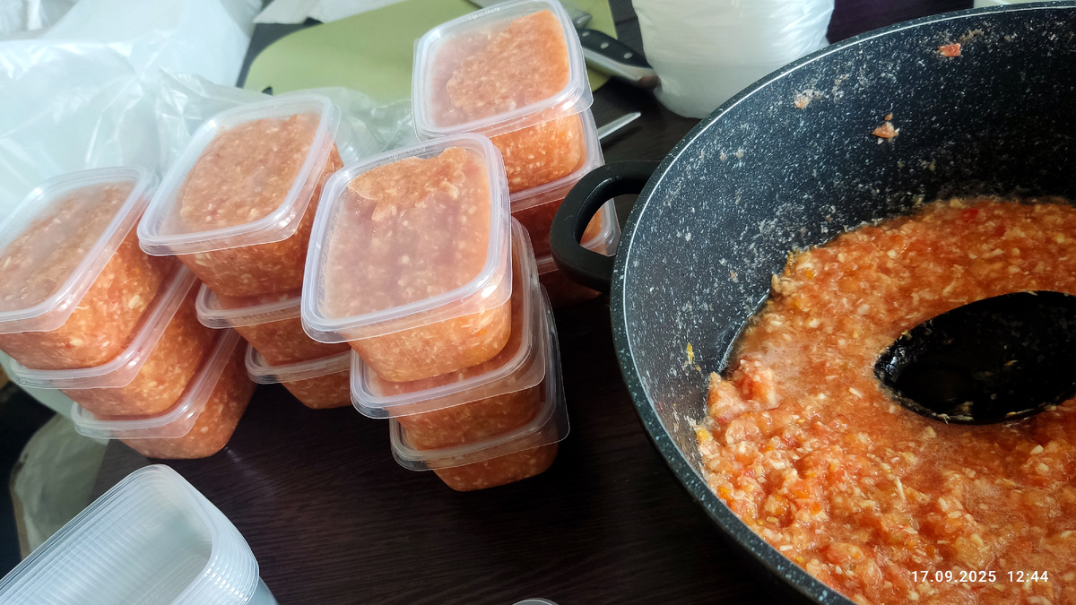 Думаю все знают эту штуку. Не знаю как правильно - соус, аджика, намазка ли, но точно знаю что штука вкусная 👍🏻 Мы больше всего её любим намазать на хлебушек и вприкуску с супом 🤤 С мясом или курочкой тоже очень вкусно. Готовится очень просто. Самое сложное тут это почистить сам хрен. Может где то он растёт прямо и ровно, но у меня он та ещё закорючка, при этом ещё и изъеденный кем то. В голове не укладывается, что это за насекомые-камикадзе, но его периодически поедают и снизу и сверху. Один из - крестоцветная блошка, но она там явно не одна старается. Может поэтому у меня так много вредителей, наедятся хрена и здоровья им хватает чтобы не реагировать на все мои обработки😄 Помидоры подойдут любого цвета, но красных должно быть больше. Лучше попробовать часть и отрегулировать под свой вкус. У меня было 800г хрена, я сначала сделала со 100 и отрегулировала под свой вкус. Чеснок, хрен (порезанный мелко) и помидоры надо пропустить через мясорубку. Чтобы не плакать и не нагружать мясор
