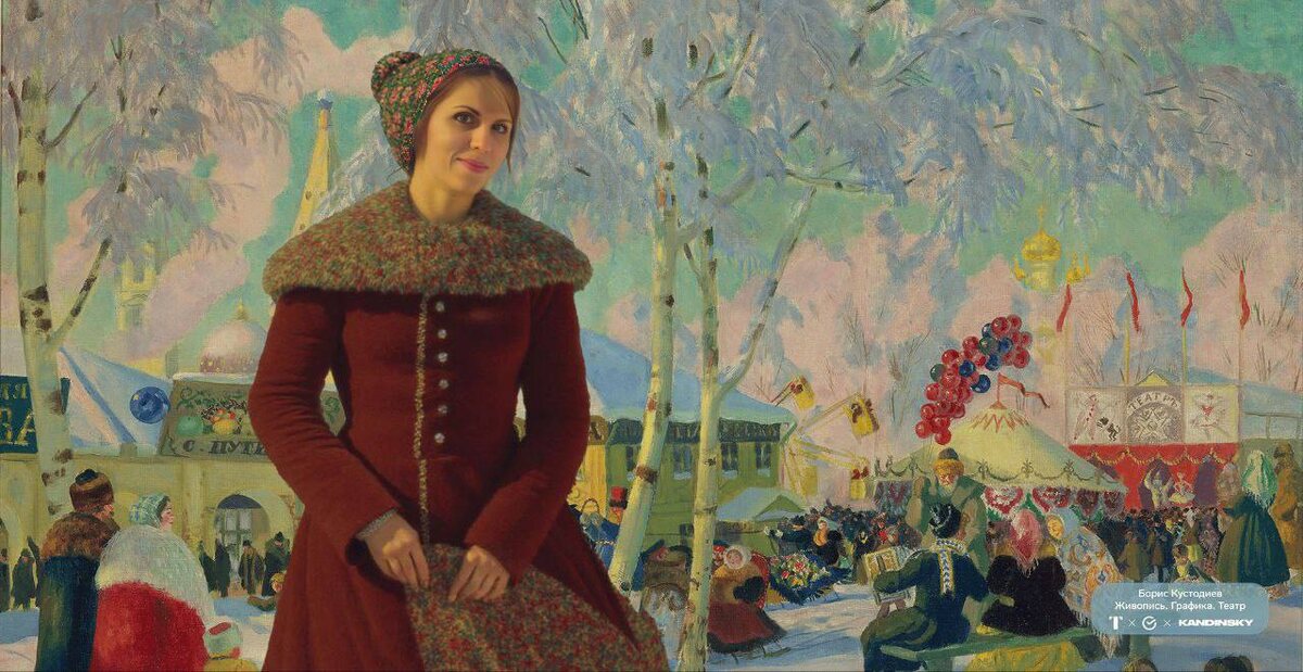 Кстати, на выставке есть автомат, помещающий вас в картину Кустодиева