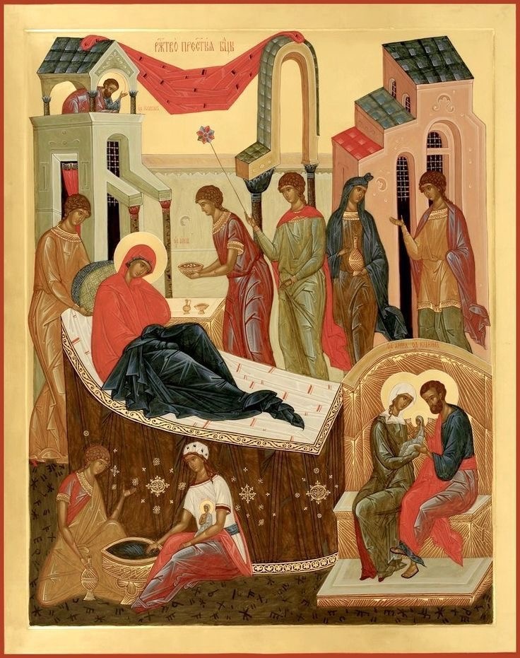 Святые отцы и толкователи Библии находили пророчества о рождении Матери Христа на страницах Ветхого Завета. Например, в этом контексте они интерпретировали сон с Лестницей Иакова (Быт. 28:10-17) или отрывок из Книги Притчей (Прит. 9:1-11). Однако в Новом Завете очень мало (или их практически нет) сведений о рождении, а тем более, детстве пресвятой Богородицы. Все, что нам известно о ней, носит достаточно скудный характер, да и то подчерпнуто из апокрифов. В данном случае, из творения, озаглавленного как Протоевангелие Иакова. Согласно ему, у благочестивой пары Иоакима и Анны долго не было детей, что по тем временам считалось проклятием Всевышнего. Из-за этого Иоаким даже не мог принести жертву в храме, так как он, по словам первосвященника, «не создал потомства Израилю». Но в момент, когда скорбящий муж молился в пустыне, Анне явился ангел со словами: «Господь внял молитве твоей, ты зачнёшь и родишь, и о потомстве твоём будут говорить во всём мире». Вскоре Анна и вправду зачала. После положенных девяти месяцев появилась прекрасная девочка, и ее, согласно обычаям того времени, принесли в Храм посвятить Богу. Таким образом не будучи каноническим, «Протоевангелие Иаокова» очень повлияло на все ветви Христианства.