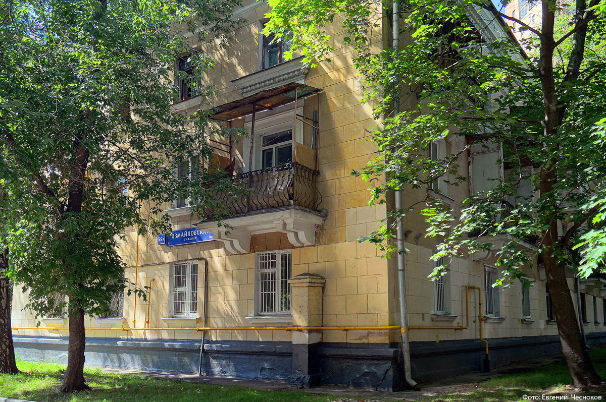 Измайловский бульвар, 59А - жилой дом (1951) с красивым лепным декором в квартирах, но с деревянными перекрытиями.