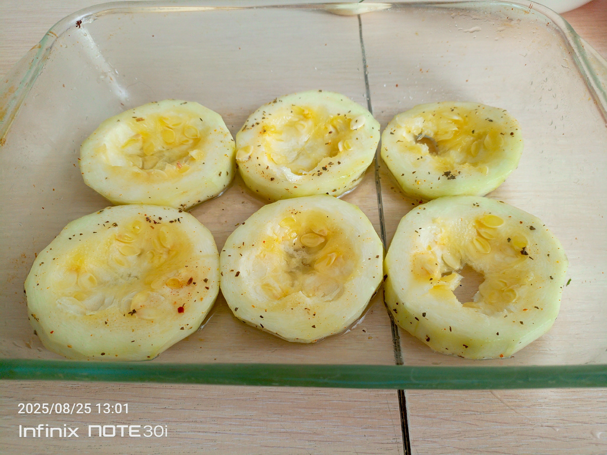 Очень нежное вкусное блюдо которое можно готовить на каждый день, а так же подавать к столу на праздничные дни. Когда надоели жареные кабачки, то можно их запечь в духовке. 😋 Нарезаем на кружочки кабачки. Примерно ширина на 1-1,5 сантиметров. Внутренность кабачка выгребаем ложкой столовой. Но так, чтобы тонкая стенка кабачка оставалась на дне, чтобы туда можно было уложить начинку. На самом деле начинка может быть любой. В данном случае у меня домашний фарш. Это не куриный. В фарш я добавила лук, чеснок и специи- для вкуса. На мелкой тёрке трем сыр твёрдых сортов. Можно конечно и на крупной. Но мне больше нравится так. А вы делайте так как вам будет удобно. Кабачки нужно посолить солью, также добавить любой вашей любимой приправы. У меня здесь травы иранские и сладкая паприка. Можно добавить сушёный укроп. И немного брызнуть растительного масла. Кто-то пользуется оливковым- можно им. У меня стеклянная форма. Лучше ее смазать растительным маслом. Я смазала сливочным маслом и немножко м