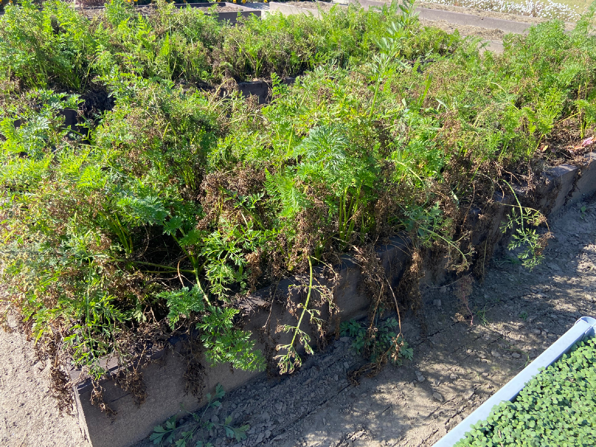 Собрала я урожай моркови. Не очень то мне она понравилась. Сажала 5 разных сортов и все они от Аэлиты. Много выросло мелочи, деформированной и перекрученной. На еду хватить, а заготовки уже не делаю. Было две маленьких грядки с морковкой. Такой необычной у меня ещё не было, морковная коса. В ящиках более менее крупная на еду и ещё было 12 литровое ведро мелочи. На следующий год буду сажать морковку других агрофирм. Подросли сидераты на грядках со второго посева. Гладиолусы ещё цветут, убирать пока не стала. Петунию Тайдал тоже пока оставила, цветёт ещё во всю, жалко вырывать. Убрала пеларгонии и цинии. Цинии гергиновидные не очень мне понравились, выросли слишком большие с мощным стеблем и корнем, кое как их повыдергивала, сажать такие больше не хочу. С пеларгоний собрала черенки. Розы ещё все цветут. Ягода тоже пока что радует урожаем. Алиссум и бархатцы уберу попозже. Осталось убрать капусту и тыкву. У гортензии уже можно удалять соцветия. Выкопала пару куст