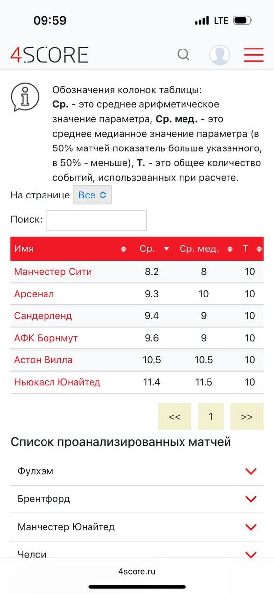 АПЛ 🏴 📈Статистика УГЛОВЫХ в РЕЙТИНГЕ КОМАНД на сегодня