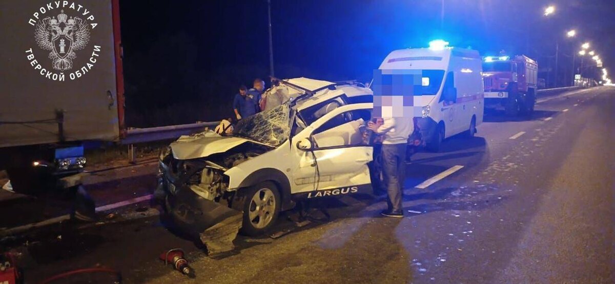 Страшное ДТП произошло в ночь на 21 сентября на 241-м километре трассы М-10 «Россия». По предварительной информации, водитель 2001 года рождения, управляя автомобилем «Лада Ларгус», не выбрал безопасную скорость и врезался в грузовик «MAN».