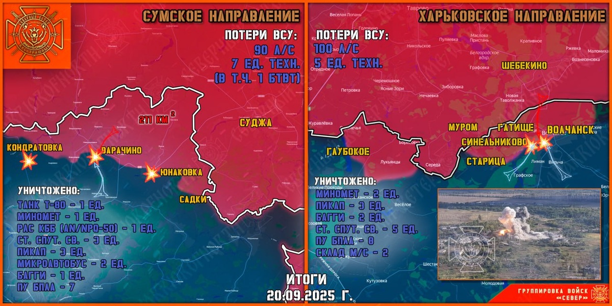 У курской границы ВСУ бросает в бой разведчиков Военкоры опубликовали сводку о положении дел на фронте на утро 21 сентября, бойцы РФ не дают ВСУ восстанавливать боеспособность у границы с Курской областью. Артиллеристы наносят удары по скоплениям живой силы противника. Таким образом, на Теткинском и Глушковском участках фронта Курской области существенных изменений не происходит. Об этом пишет телеграм-канал «Северный Ветер». А вот чуть далее от границы подразделения морской пехоты продвигаются на правом фланге наступления группировки «Север». ВСУ перегруппировывается и восстанавливает боеспособность, пополняя ряды личным составом смежных бригад: 71 оебр, 156 омбр и других, действующих на направлении. Об этом стало известно после того, как штурмовые группы морпехов продвинулись в лесу возле Варачино на 200 метров и захватили в плен одного военнослужащего 225 ошп ВСУ. Он рассказал, что командование Киева отправляет в штурмы специалистов радиоэлектронной борьбы и РЭР.