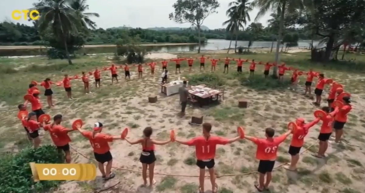 В прошлом выпуске остров покинули шесть человек. Игра за кофе и континентальный завтрак. Стоять по кругу и на вытянутых руках между ладонями друг друга держать тарелки. Два победителя и они выберут ещё троих, которые присоединятся к завтраку. Дима провоцировал участников: пил кофе и ел горячие бутерброды)))🥪 Спустя 50 минут Дима скомандовал поднять правую ногу. Даша 35 выбыла раньше. 35 Даша своего бывшего жениха 51 Максима на синхроне аж разнесла в пух и прах: «Я расстроилась очень сильно, он знал как я хотела эту яичницу. Обидно, что Макс не поборолся ради меня и даже если это дело случая, то он не смог подобрать слова: Даш, я понимаю как тебе это было важно, я слышал тебя все это время». То есть на 52-й минуте Макса толкнули и он не удержался, а он видите ли не поборолся ради Даши. На 60-й минуте осталось четыре человека и участники договорились, что идут они вчетвером плюс жена одного из участников. 50 Артём, 33 Женя, 34 Юля, 47 Александр. 36 Арианна, жена Артема 50, уступ