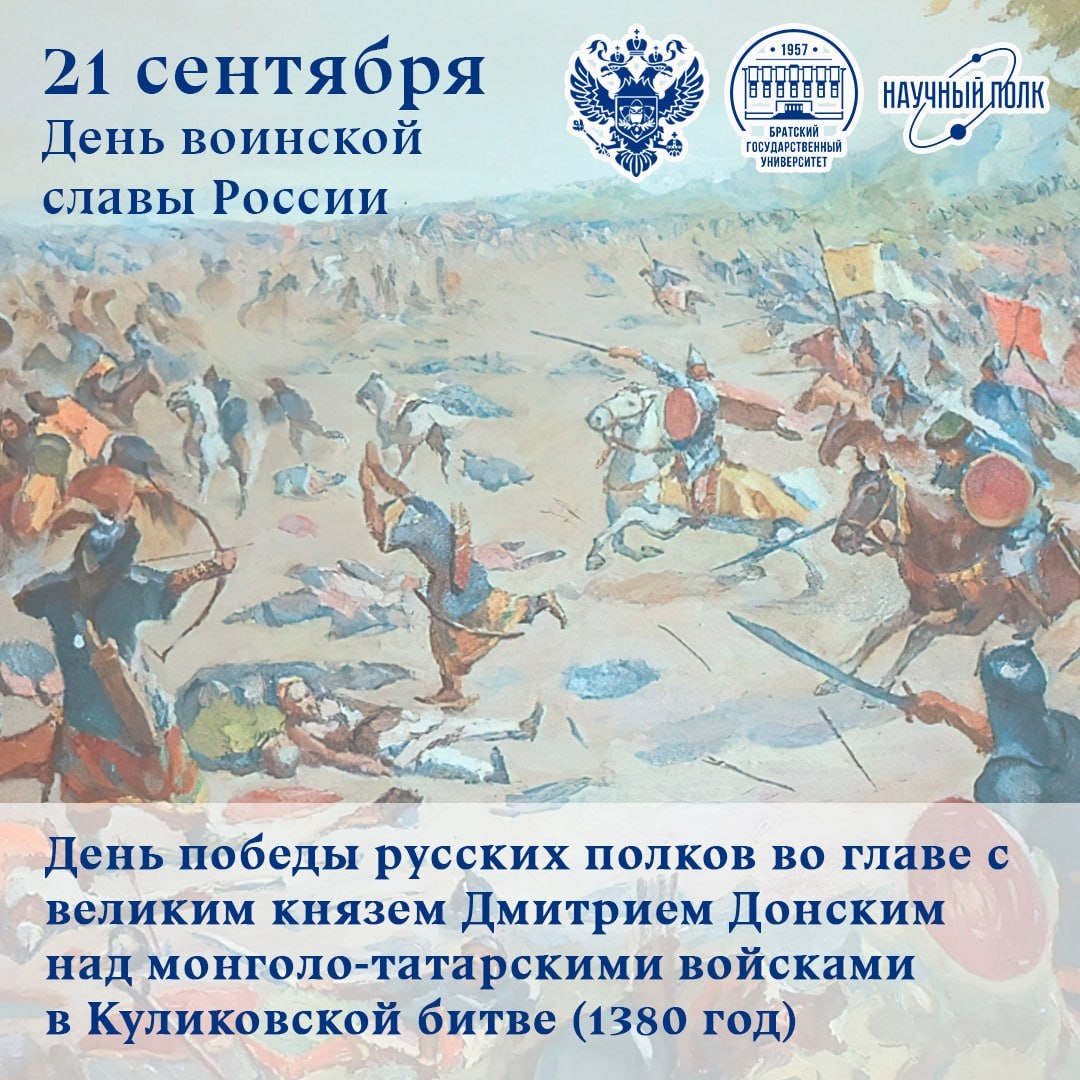 21 сентября 1380 года русские полки вышли на Куликово поле. Туман окутывал равнину, трава была мокра от росы, а над ней вставало солнце, предвещая великий день. Воины князя Дмитрия Донского сражались не только за княжества, но и за всю Русскую землю. Их единство стало оружием сильнее мечей. В тот час они показали: разрозненные силы, собравшись воедино, способны сокрушить любого врага. Куликовская победа - не просто страница в летописи. Это напоминание о силе духа, верности Родине и о том, что будущее принадлежит тем, кто не боится встать плечом к плечу. Мы с благодарностью храним память о тех, кто отстоял честь и свободу Руси. Подробнее в нашей статье 📝 #НаучныйПолк #НаучныйПолк2025 #Мыпомним