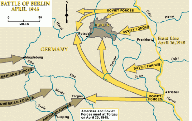 На самом деле это лишь удобная легенда. После того как советские войска вошли в Германию, сами немцы старались всеми силами пустить американцев как можно дальше на запад. Западный фронт фактически был брошен, а все оставшиеся боеспособные силы дрались на Востоке против Красной армии. Те немцы, что уходили к американцам, делали это только для того, чтобы сдаться. Американцы продвигались так быстро, как вообще возможно передвигать гигантскую армию по территории, где никто не сопротивляется. Передовые части 9-й армии США уже 11 апреля 1945 года вышли к окраинам Магдебурга — это всего около 100 километров к западу от Берлина. Но дальше они начали закрепляться: создавать плацдармы на Эльбе, наводить порядок в тылу. «Просто рвануть» на Берлин они физически не могли. Между их позициями и Берлином стояла целая 12-я немецкая армия. Особенно нелепа популярная байка о том, что генерал Паттон мог первым ворваться в Берлин. На деле он находился более чем в 320 километрах от города и вообще двигался