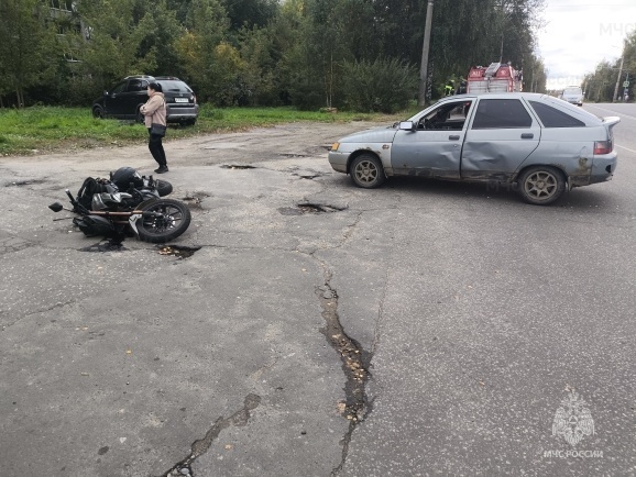 Авария случилась около трех часов дня субботы 20 сентября. ВАЗ и мотоцикл столкнулись на улице Глебовская, у дома №6. Судя по фото, происшествие имело место при съезде с основной дороги. На место пришлось вызывать не только автоинспекторов, но и сотрудников МЧС. В ликвидации аварии приняли участие две единицы техники и шесть сотрудников. Как рассказали в областном управлении МЧС, в ДТП есть пострадавшие. В управлении уточнили, что пострадал один человек. Состояние здоровья мотоциклиста неизвестно. В госавтоинспекции просят водителей быть более внимательными на дороге, в том числе при совершении поворотов соблюдать скоростной режим и правила движения по полосам.