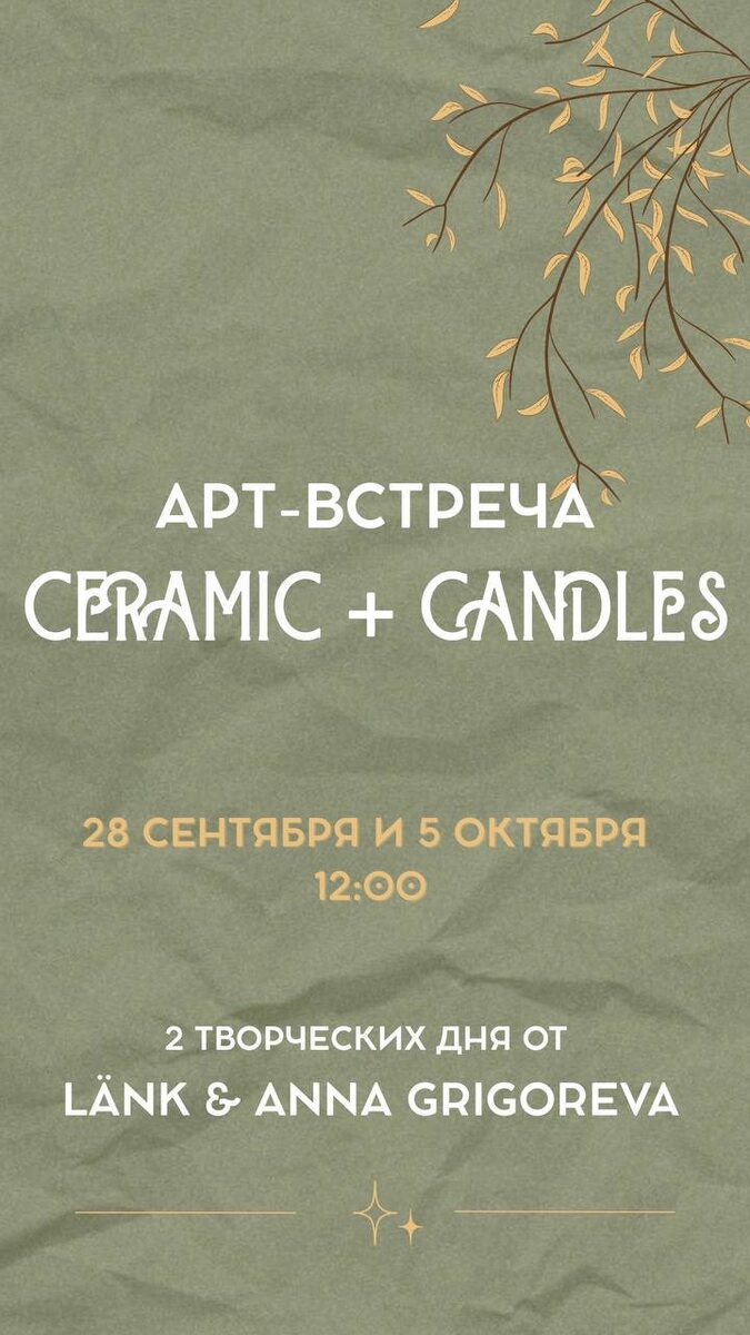 Совсем скоро стартует наша первая Арт-встреча в этом сезоне. Керамика и свечи 🕯️Два творческих дня. Мы создадим свою керамическую форму, а после ароматную свечу. Две встречи. Два дня наполненные общением и творчеством, неповторимыми ароматами, свежестью и уютом в приятной компании творческих людей. 📍Где: Budva, Joy (около Okov) Когда: 28.09 и 05.10 Количество: осталось 4 места 2 места Сколько: 70€ за 2 дня Обязательна предварительная запись. https://dzen.ru/id/63396df55565456157e5d92b