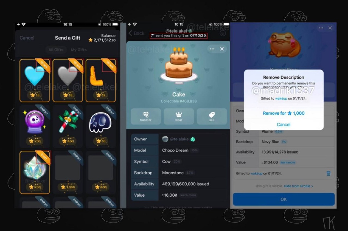 🐹 НОВЫЕ ФИЧИ ДЛЯ ПОДАРКОВ В новом обновление Телеграм так же добавят: — Удаление подписи с подарка (стоить будет 1 000⭐️) — У каждого подарка будут данные: отправитель, дата и история передачи подарка — Премиум подарки будут иметь отметку с количеством подарков, которое доступно пользователю для покупки Так же возможно добавят двухфакторку для подтверждения передачи подарка ➖➖➖➖➖➖➖➖➖ #gifts #подарки #telegram Чат • Portals • Mrkt • Tonnel • Купить Звёзды • Биржи