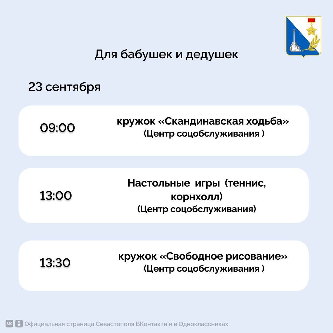 В карточках Правительства Севастополя — расписание мероприятий на следующую неделю.