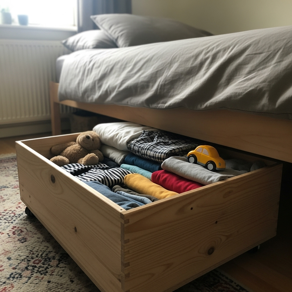 История из жизни. Вечером пытаюсь убрать квартиру, а под кроватью как в черной дыре – пыль, пакеты, пара одиноких носков. Пространство есть, толку ноль. Заказал ролики, взял лист фанеры и за один вечер собрал два аккуратных ящика. Встали как родные, катаются тихо, держат вес пледов и зимних курток, а вид – как из магазина. Ни сварки, ни сложных узлов. Только дрель, лобзик и ровные руки.