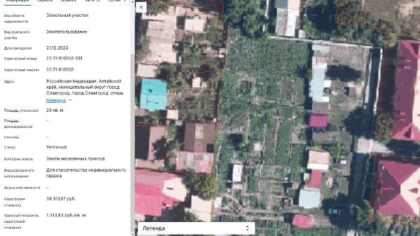 Название: земельный участок с кадастровым номером 22:71:010502:391, общая площадь – 29 кв.м., расположенный по адресу: Алтайский край, г