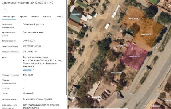 Название: Земельный участок площадью 500 кв.м., расположенный по адресу: Российская Федерация, Астраханская область, г Астрахань, Советский