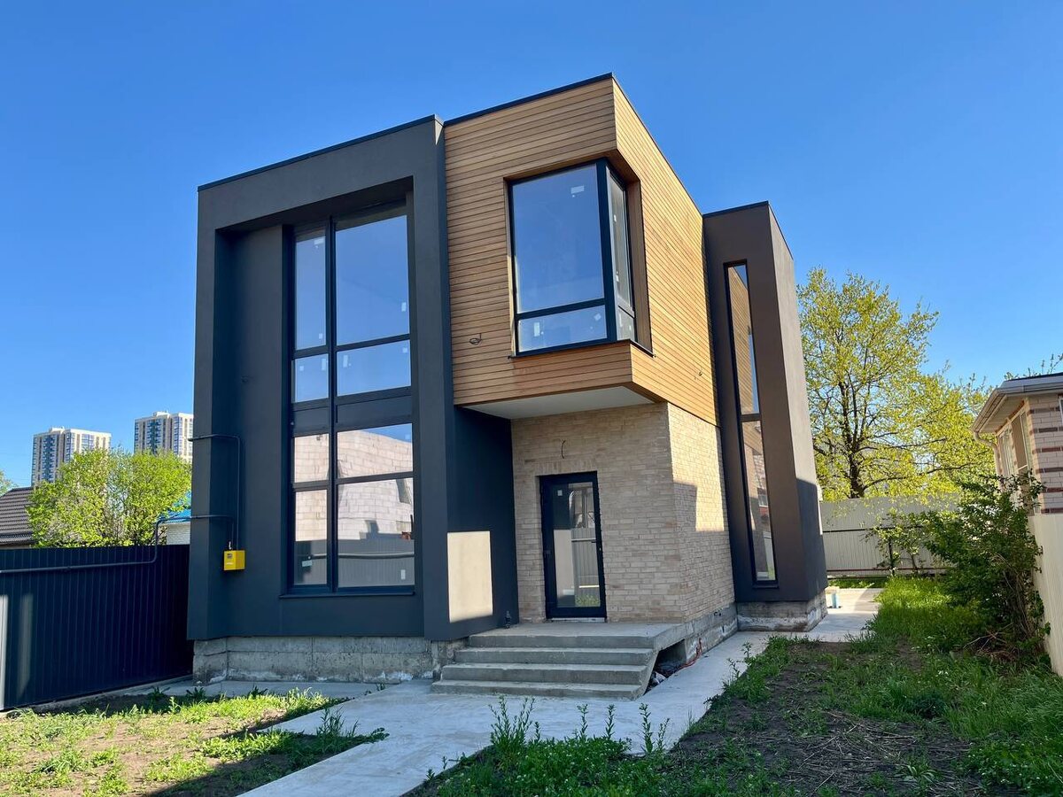 🔥В ПРОДАЖЕ! 🏡Новый коттедж в стиле хай-тек в микрорайоне Губернский, район Любимово. 📍Жилой массив представлен исключительно домами и коттеджами, никакой высотной застройки нет на улицах нет, и при этом в пешей доступности — вся необходимая социальная и коммерческая инфраструктура. ◾️Двухэтажный коттедж возведен в современном архитектурном стиле хайтек с использованием качественных строительных материалов: ленточный фундамент, стены — забутовочный кирпич, облицован фасадной штукатуркой и кирпичом ручной формовки, в отделке фасада использовалась также лиственница. ◾️Панорамные металлопластиковые энергосберегающие окна создает в доме много света, плоская кровля, входные двери. ◾️Дом — в предистовой отделке. ◾️Дом общей площадью 165 кв.м + крытая терраса эргономичной планировки: крыльцо, прихожая, холл, гардеробная, изолированная комната, совмещенный санузел, котельная, кухня-гостиная с выходом на террасу и задний двор. ◾️Второй этаж — холл, три изолированные комнаты, санузе