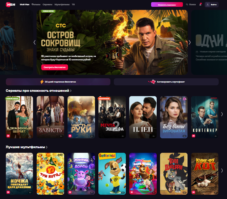 - Оригинальные проекты (ivi Originals) — уникальный контент, который нельзя увидеть больше нигде.