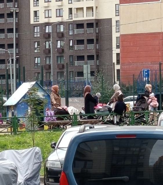 🧕🧕🧕 Обстановка в ближнем Замкадье Вилайят Боброво. Пока местные жители трудятся на благо страны, незваные гости столицы заменяют их собой на детских площадках и в местах отдыха. Им работать не надо. Бюджет оплатит их безделье и бесконтрольное размножение из наших налогов.