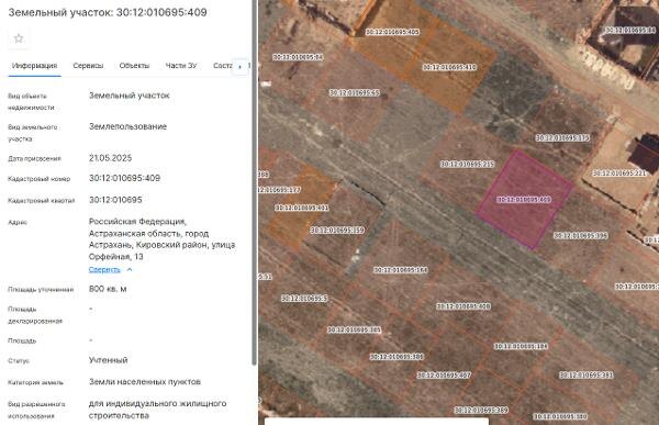 Название: Земельный участок площадью 800 кв.м., расположенный по адресу: Российская Федерация, Астраханская область, город Астрахань
