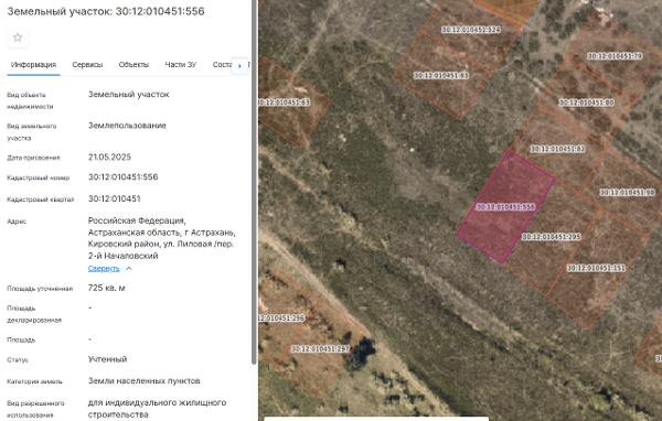 Название: Земельный участок площадью 725 кв.м., расположенный по адресу: Российская Федерация, Астраханская область, г Астрахань, Кировский