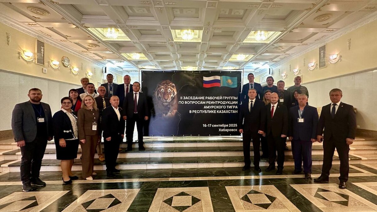 В Хабаровске состоялось второе заседание рабочей группы по вопросам реинтродукции амурского тигра в Республику Казахстан. Российскую делегацию возглавил директор департамента международного сотрудничества в Минприроды России Иван Кущ, казахстанскую – председатель Комитета лесного хозяйства и животного мира Данияр Тургамбаев. Центр «Амурский тигр» принял участие в организации заседания и его работе. Мероприятие стало важным шагом в реализации положений меморандума о взаимопонимании между Минприроды России и Министерством экологии, геологии и природных ресурсов Республики Казахстан. «Амурский тигр — национальное достояние России. Наша страна является одним из мировых лидеров по сохранению и восстановлению этой краснокнижной большой кошки, и мы готовы делиться опытом в этих сферах с Казахстаном», – отметил Иван Кущ. В ходе встречи стороны обсудили ключевые вопросы подготовки к возвращению тигра в экосистемы Казахстана. В итоге согласован проект Совместного плана по подготовке к ввозу