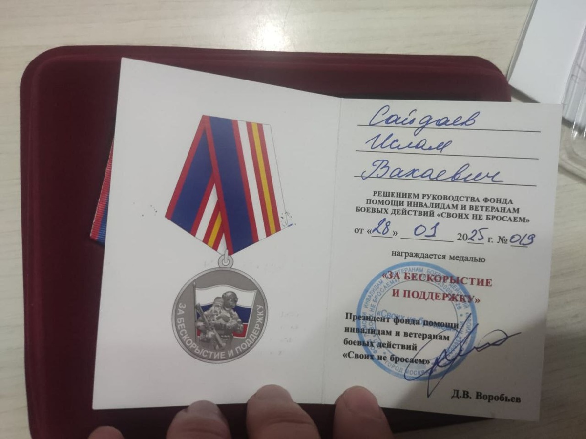Нашего сетевого брата Ислама Сайдаева наградили за его многолетнюю волонтёрскую деятельность в интересах Армии России