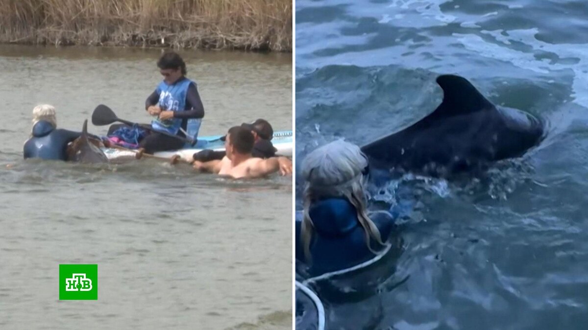 Заплывшего в реку на Кубани краснокнижного дельфина вернули в Чёрное море