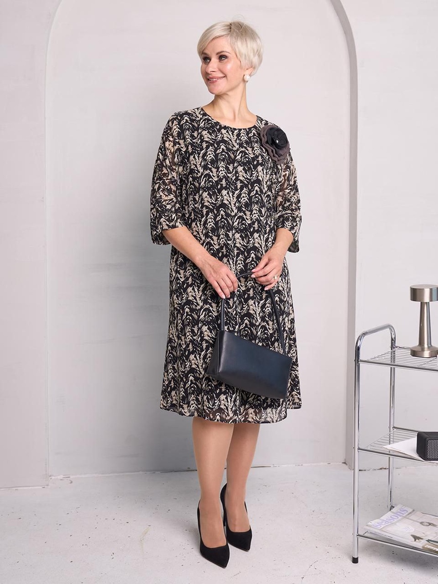 Вкусное шоколадное платье со сливочным оттенком подойдёт и в пир и в мир. Универсальный фасон и длина. Прекрасное вложение.