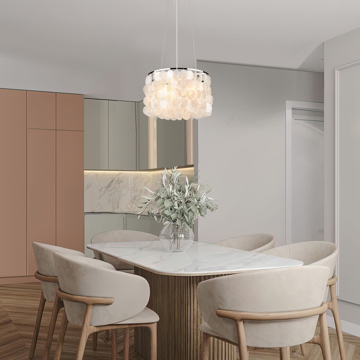 Есть материалы, которые не просто наполняют пространство светом, а создают целое настроение. 🐚Перламутр — натуральный декоративный материал, образующийся на внутренней поверхности раковин моллюсков (устриц и мидий). Каждая пластина перламутра уникальна благодаря своему природному происхождению. Переливы, игра цвета, тонкие узоры — перламутр привносит в интерьер живую природную текстуру, которую не способен повторить ни один искусственный аналог. 🤫Перламутр не кричит о роскоши, он о ней нашептывает. Он отлично вписывается в самые разные стили: современную классику, бохо, ар-деко, сканди, минимализм. ☝Несмотря на солидный вид, конструкции из перламутра часто визуально очень легкие. Они не утяжеляют пространство, а как бы парят в нем, что особенно ценно для небольших комнат или низких потолков. 💭Многослойная структура перламутра создает теплое, уютное, почти мистическое свечение без резких бликов и теней. Оно не слепит глаза, а окутывает пространство нежным сиянием. Идеально для зон ре