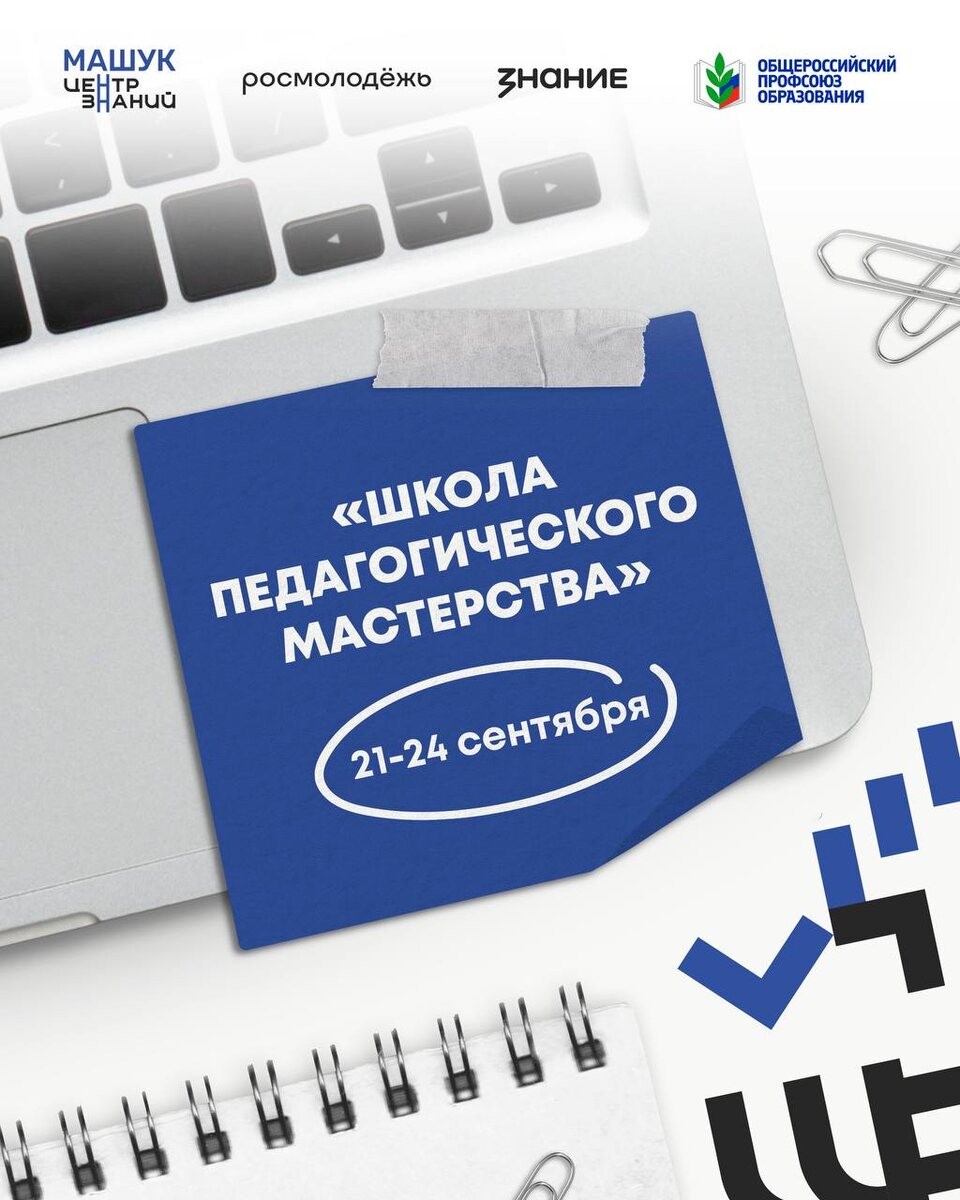 📚 открывает в онлайне «Школу педагогического мастерства» С 21 по 24 сентября совместно с Общероссийским Профсоюзом образования пройдёт ключевая программа для педагогов среднего профессионального образования, которая поможет: 👉 освоить современные педагогические подходы и приёмы мотивации студентов; 👉 научиться эффективно работать с молодежью; 👉 развивать культуру наставничества; 👉 стать частью профессионального сообщества. Участники получат практические знания, которые можно применять сразу после программы, и сертификат Центра знаний «Машук», пригодный для портфолио и аттестации. Мы приглашаем онлайн-участников — для вас будут доступны все ключевые моменты программы, её смыслы и ценности.☺️ Регистрируйтесь по ссылке ⬆️, чтобы вместе с нами развивать новые стандарты педагогического мастерства.