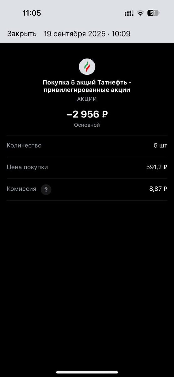 На просадке сегодня добрал Татнефть и 1 сбер на сдачу