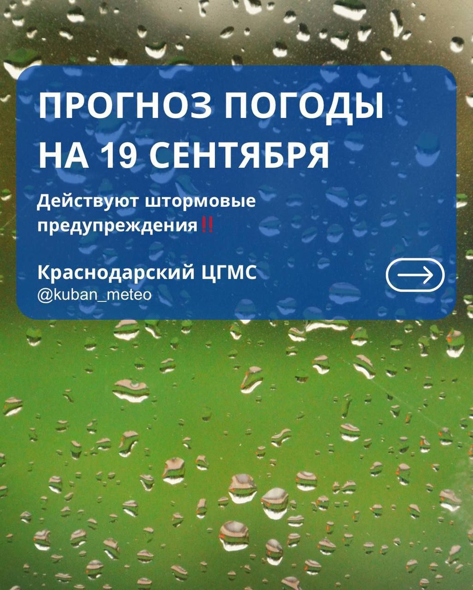 🌦️Прогноз погоды в Краснодарском крае на 19 сентября