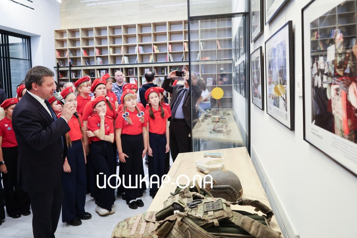 🇷🇺 В музейно-патриотическом центре «Герои Отечества» открыта фотовыставка, посвященная специальной военной операции Экспозиция включает фотографии корреспондентов «Российской газеты». На открытии присутствовали представители власти и общественности, в том числе председатель Государственного Собрания Республики Марий Эл Михаил Васютин, заместитель Председателя Правительства – министр культуры, печати и по делам национальностей Республики Марий Эл Константин Иванов и руководитель регионального филиала фонда «Защитники Отечества» Ренат Магсумов. Директор филиала «Российской газеты» по Приволжскому Федеральному округу Арсений Бабенков выступил с презентацией выставки.