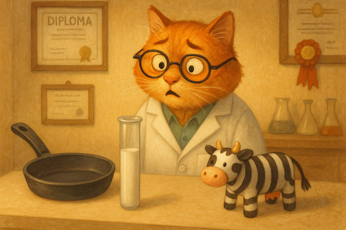 Добрый день, мои любознательные читатели! Бывает, сидишь себе спокойно, наблюдаешь за пылинками в солнечном луче, и тут в новостной ленте проскакивает такое, что шерсть дыбом встает. Нет, это не очередная статья о пользе огурцов для кожи. Это — лауреаты Шнобелевской премии 2025 года! Для тех, кто не в курсе: Шнобелевская премия (Ig Nobel Prize) — это награда за научные исследования, которые «сначала заставляют вас засмеяться, а потом — задуматься». И в этом году номинанты превзошли себя. Тут даже я, кот учёный, навострил уши и отложил послеобеденный сон. Приготовьтесь, мы погружаемся в пучину самой странной, но оттого не менее прекрасной науки! Итак, приз по химии. Встречайте идею, которая может перевернуть мир диетологии или, как минимум, мир производителей посуды. Ученые из Ратгерского университета предложили... есть тефлон. 🤦♂️ Да-да, тот самый политетрафторэтилен (ПТФЭ), которым покрывают ваши сковородки. Идея проста, как шлепок лапой по столу: Авторы предполагали, что ПТФЭ может