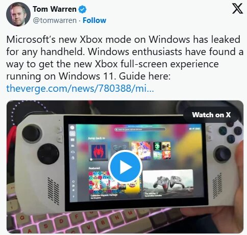 Microsoft неожиданно разблокировала Xbox Mode для Windows 11 на всех портативных игровых устройствах, и энтузиасты уже активировали его на существующих моделях. Изначально функция анонсирована для грядущего ASUS ROG Xbox Ally, но благодаря утечке и реестровым твикам она работает на "старых" портативках, таких как оригинальный ASUS ROG Ally и MSI Claw. Режим оптимизирует систему для гейминга: подавляет фоновые процессы, отключает Explorer и загружается прямо в Xbox-приложение, экономя около 2 ГБ ОЗУ. Это критично для устройств с 16 ГБ RAM, но не столь существенно для вариантов с 24 или 32 Гб оперативки. Технически Xbox Mode предлагает консольный интерфейс: доступ к играм из Microsoft Store, Steam, Battle.net и других лаунчеров без рабочего стола. Добавлены удобные элементы — панель навигации и задача-менеджер, адаптированные под тачскрин. Переход в обычный Windows возможен, но Microsoft советует использовать клавиатуру или мышь для режима рабочего стола, чтобы избежать неудобств.