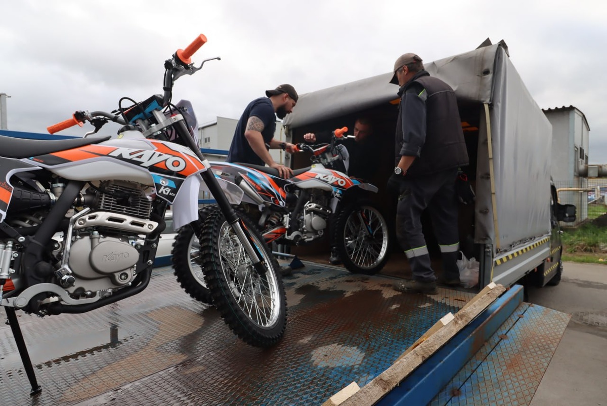 В доверху заполненной «Газели» - все, что необходимо сегодня фронту: автономные теплогенераторы, запасные аккумуляторы для дронов, маскировочные сети, продукты и термобелье, а, главное – четыре кроссовых мотоцикла KAYO, незаменимых в зоне боевых действий: быстрые и маневренные, они позволяют ездить по бездорожью и пройти там, где не смогут бронетранспортеры и грузовики.