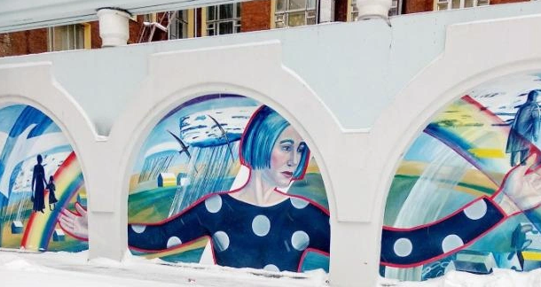 Одно из самых красивых граффити Новосибирска — 5-этажная монументальная роспись от талантливой художницы Марины Ягоды и проекта «ТакНадо».