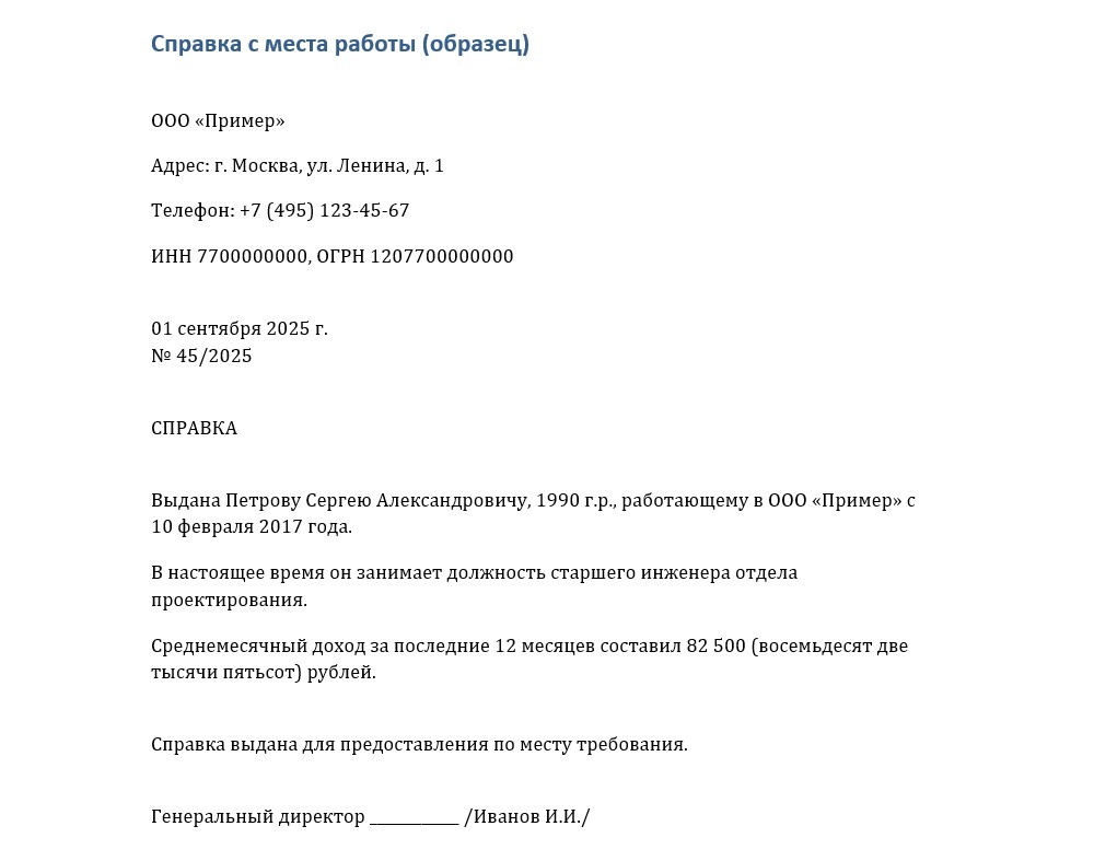 Справка с места работы по месту требования — зачем нужна и как получить