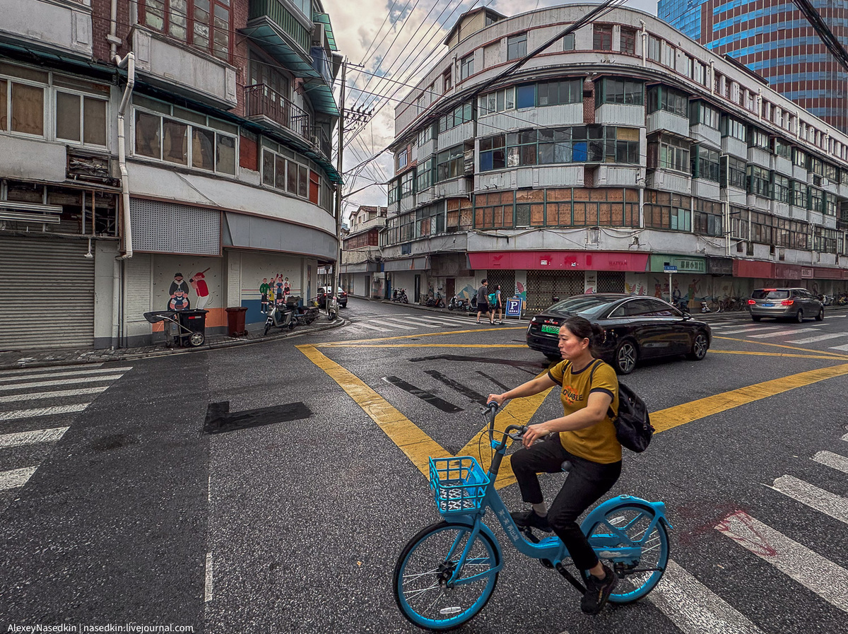 Выкарабкавшись из пусть и кондиционируемой, но всё же походящей на циклопический муравейник пещеры шанхайского метро, и окунувшись в липкую сауну города, я нашёл в себе силы поизучать китайский "Нью-Йорк" во всей его цельнокупности. Даже после того, как тамошние жители ну никак не могли подсказать местоположение отеля, сколько не тычь им измятой бумажкой с адресом. А по-английски они, естественно не говорят. Что ж, полюбуемся на Шанхай-2025 без лишних прикрас. Место вокруг гостиницы поначалу показалось весьма привлекательным, во всяком случае можно было слегка полюбоваться старой архитектурой. Однако если отойти чуть поодаль, обнаруживаешь всю "прелесть" района. Подозреваю, как и любого другого. Красивые здания буквально облеплены новостроем со всех сторон. Добрым словом поминаешь Москву, в которой до подобного (пока) не дошли. Здесь намешано буквально всё - и человейники, и бизнес-центры, и убогое жильё для беднейших слоёв населения. И... запах. В приток реки Хуанпу невозбранно сливаю