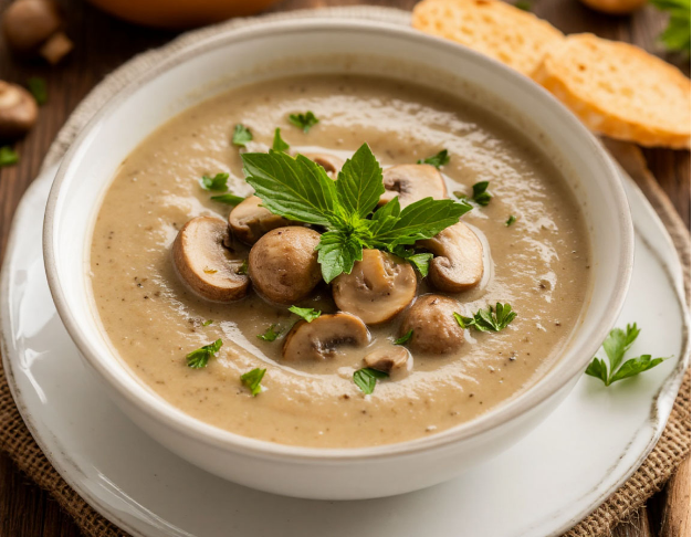 Этот суп обладает глубоким вкусом , который подчеркивают сливки и свежая зелень. Его можно готовить из любых грибов: шампиньоны дадут нежный вкус, а лесные грибы (белые, подберезовики) — более насыщенный и ароматный.