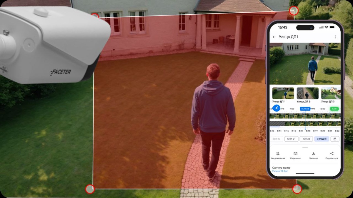 Движение в кадре – первый сигнал, на который реагирует любая система видеонаблюдения. Это самая простая и при этом одна из самых востребованных функций. С ее помощью камеры Faceter фиксируют любые изменения: от открытия двери в офисе до неожиданной активности возле автомобиля. Камера анализирует изображение, делит его на зоны и отслеживает изменения по пикселям. Если зафиксированы сдвиги, система отмечает событие и отправляет уведомление. При этом, пользователь может самостоятельно выбрать, в какой области кадра следить за движением, чтобы исключить ненужные срабатывания. Чтобы сделать работу точнее, доступны два параметра: Баланс этих параметров позволяет подстроить камеру под разные условия. Мы протестировали разные сценарии и подобрали оптимальные варианты для базовой настройки видеонаблюдения: Все указанные настройки условны, так как финальные значения индивидуальны: многое зависит от размера объекта, его удаленности от камеры, освещенности и локальных особенностей места съемки. С