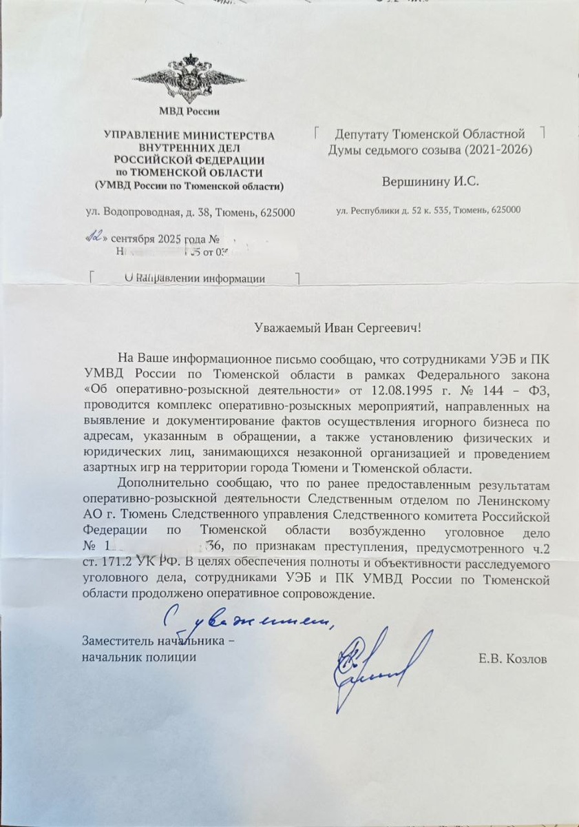 В ответ на пост Удалось добиться возбуждения уголовного дела по незаконной игорной деятельности! Считаю это весьма серьёзной и актуальной проблемой. В которую, к сожалению, в том числе затягивается наша молодёжь. Ломают судьбы, становятся должниками и так далее. Категорически против распространения этой заразы!