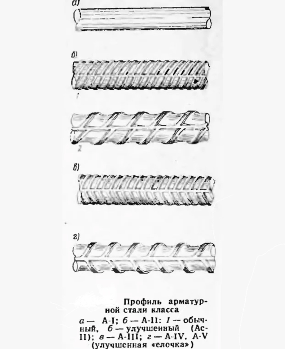 Обследование сооружений производят, когда: 1) Ознакомление с проектной документацией и другой документацией на сооружение 2) Обследование на объекте Размеры Может быть составлен обмерочный чертёж. Трещины, сколы и другие дефекты отмечаются на чертеже, производится фото и видео фиксация. 3) Испытание в лаборатории и выводы 4) Заключение о состоянии сооружения и рекомендации по дальнейшим действиям (улучшению состояния конструкций) Может быть приведена сметная стоимость рекомендуемых работ В ряде случаев для определения соответствия используемых материалов и элементов, используют их визуальные отличительные особенности. Изучив арматурные сортаменты, можно обнаружить некоторые закономерности. Например, такие: ! Обратите внимание на то, что в разных выпусках сортамента, а также разных сортаментах сечения могут выглядеть по-разному Всегда нужно оценивать существующие конструкции внимательно - потому что по проекту может быть элемент одного класса, а по факту заложен др