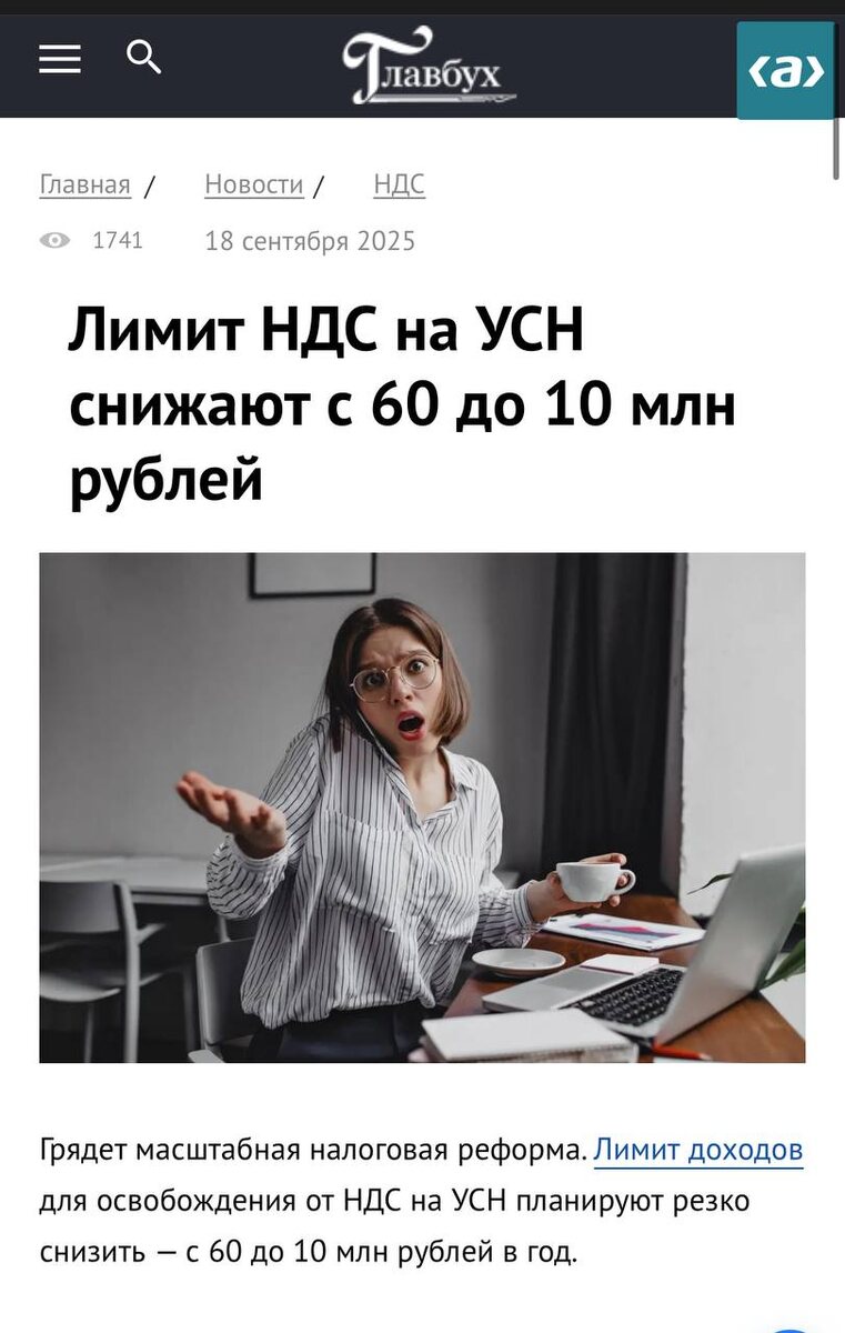 В ответ на пост Как говорится доброе утро… Пора может коллеги начать считать юнитку с учетом работы в белую с возвратом ндс? 🙄🫠 Источник. https://www.glavbukh.ru/news/53618-limit-nds-na-usn-snijayut-s-60-do-10-mln-rubley