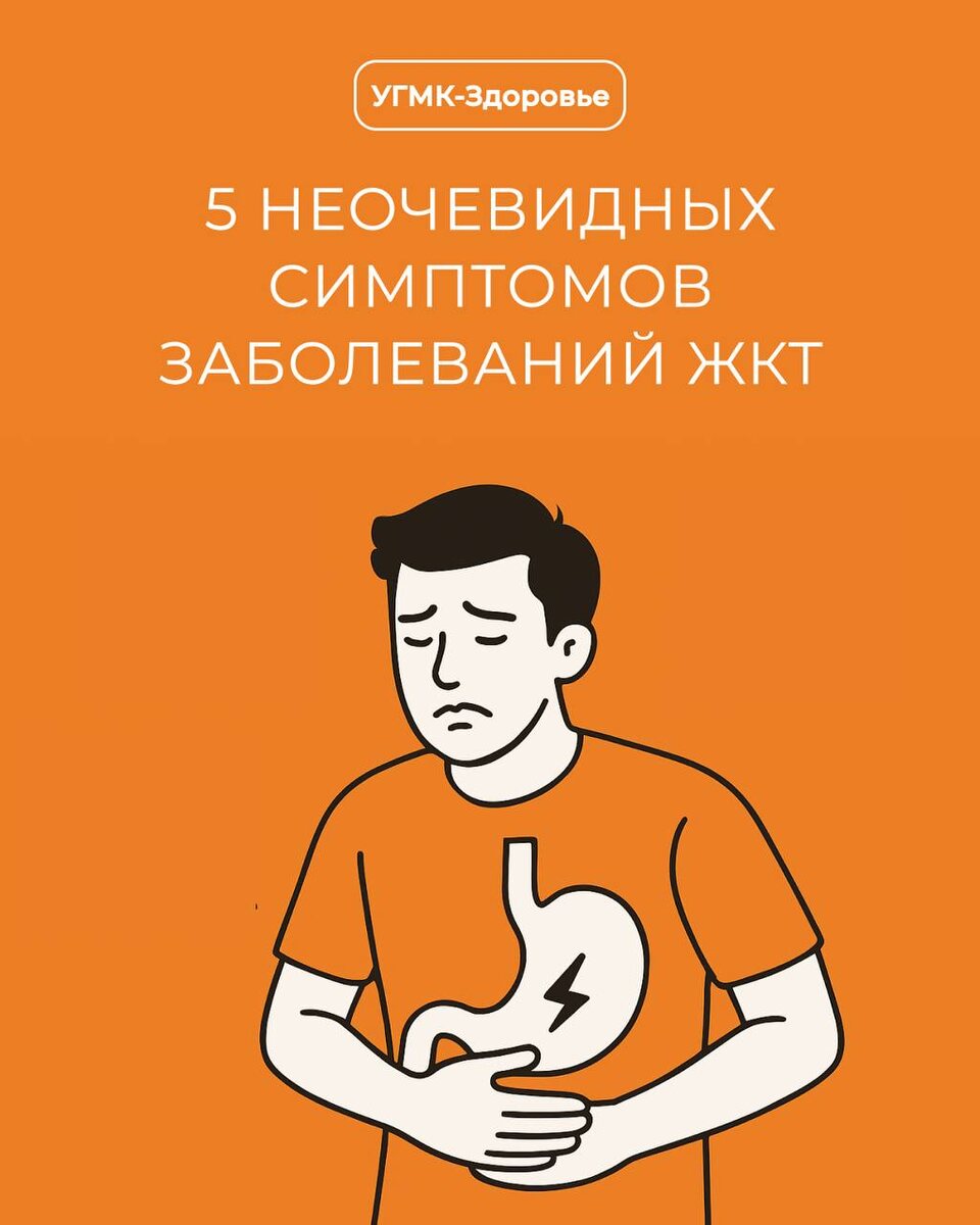 ✅5 неочевидных симптомов заболеваний ЖКТ Мы привыкли думать, что проблемы с желудочно-кишечным трактом проявляются только болью в животе или изжогой. Но на самом деле у заболеваний ЖКТ есть и другие, совсем неочевидные признаки. Подробнее о них мы рассказали в карточках! ✅ В «УГМК-Здоровье» гастроэнтерологи проведут диагностику и помогут выявить скрытые причины недомоганий. Запишитесь на консультацию по ссылке.