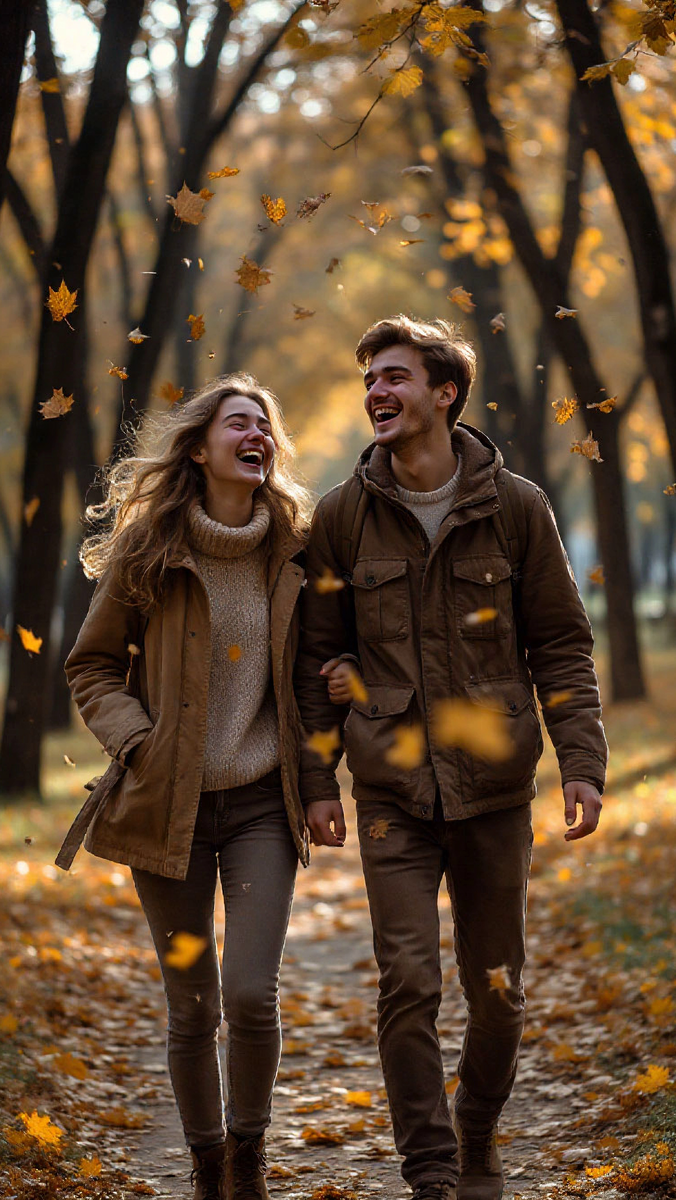 Солнце осенней Москвы было щедрым и теплым. Его лучи пробивались сквозь золотую листву деревьев Парка Горького, роняя на асфальт причудливые узоры. Воздух, свежий и прозрачный, был наполнен ароматом опавшей листвы и далекого, увядающего лета. Под ногами у гуляющей пары весело шуршали желтые и багряные листья, взметаясь вихрем от легких шагов.