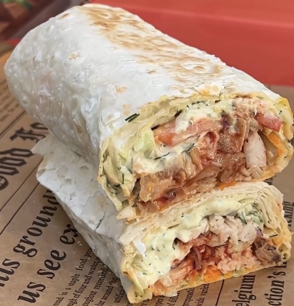 ЧТО НАДО: ▫️Бедро куриное 400 гр ▫️Капуста 100 гр ▫️Помидор 1 шт ▫️Огурец маринованный 3 шт ▫️Лук 1/4 шт ▫️Морковь 1 шт ▫️Лаваш 2 шт Соусы: ▫️Перетертые томаты 150 мл ▫️Прованские травы ▫️Майонез 150 гр ▫️Сметана 2 ст. ▫️Укроп, чеснок 1. Курицу замариновать в специях. 2. Обжарить курицу на сковородке с двух сторон, накрыть крышкой и оставить на 5 минут. 3. Нарезать овощи и измельчить курицу на небольшие кусочки. 4. Для белого соуса смешать майонез, сметану, зелень, прованские травы. Для томатного соуса смешать перетертые томаты с прованскими травами. 5. Лаваш смазать белым соусом, выложить капусту, морковь, помидоры, огурцы, куриное мясо, полить томатным соусом, свернуть получившуюся шаурму и обжарить на сковороде с двух сторон. Приятного аппетита 😋