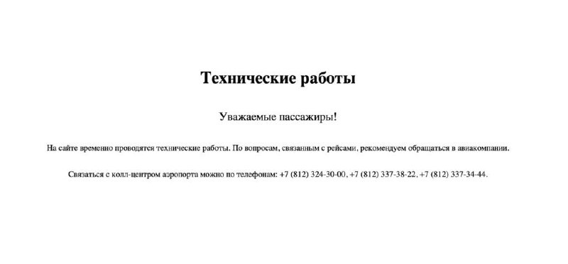 Сайт аэропорта Пулково взломали Вместо привычной страницы авиагавани на портале стоит предупреждение о технических работах. В пресс-службе Пулкова в телеграм-канале заявили, что причиной является взлом, а работа сайта на данный момент ограничена. https://bg.ru/bg/city/city-news/29760-pulkovo-vzlom ❤️ «Большой Город»