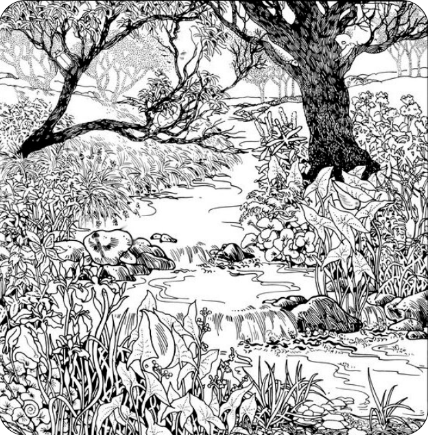 Знаете, что общего у зарядки для ума и утренней пробежки? И то, и другое делает нас сильнее и здоровее. Вот только качать нужно не только бицепсы, но и наш мозг! И лучший тренажерный зал для него – это оптические иллюзии. Эти хитрые картинки заставляют наш мозг выйти из зоны комфорта, бросить вызов шаблонному мышлению и начать создавать новые нейронные связи. Это как кроссворд, только в разы увлекательнее! Такая «гимнастика» – отличный способ поддержать ясность ума, улучшить концентрацию и даже отсрочить возрастные изменения, например, болезнь Альцгеймера. В общем, смотреть на обманки не только весело, но и очень полезно. А теперь – к практике! Перед вами не просто умиротворяющий черно-белый пейзаж. Это настоящая головоломка, нарисованная хитрым мастером. Посмотрите на эту реку, на ветви деревьев, склонившиеся над водой… Кажется, что здесь нет ничего, кроме природы. Но художник спрятал здесь много «гостей»: прекрасную девушку и очень много животных лису, рыбу, птицу, утку и др. Не сп