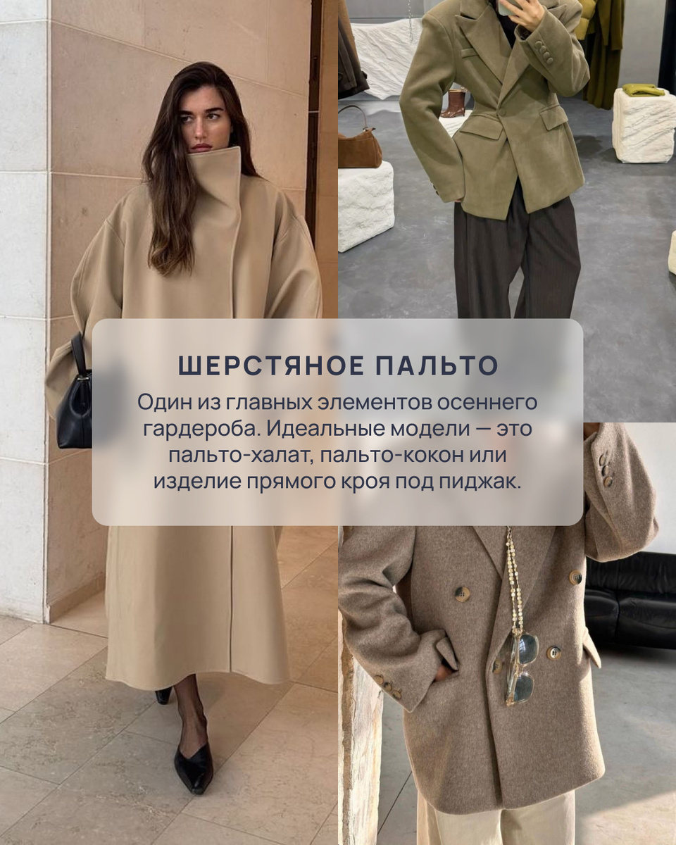Это база Световой день становится короче, а деревья уже сбросили достаточно листьев для того, чтобы шуршать ими по асфальту. Определенно не считаем это поводом для грусти, а даже наоборот — идеальным временем для стильных экспериментов. Предлагаем провести ревизию гардероба вместе и проверить, есть ли в нем все необходимые базовые модели для образов на осень. Шерстяное пальто Практичное, универсальное и подходит почти к любому образу. Под это описание подойдет любая классическая модель пальто, но лично мы в этом сезоне не можем удержать себя от покупки мягкого пальто-халата. А еще пальто под пиджак — они сейчас одни из самых популярных, но точно не потеряют своей актуальности в ближайшее время и прослужат вам не один сезон. Тренч или плащ AFINA родом из Санкт-Петербурга, поэтому команда бренда не понаслышке знает все о переменчивой погоде и о том, как пережить ее капризы (тренчи и плащи играют в этой истории не последнюю роль). Но в этом сезоне в тренде не только классическая верси